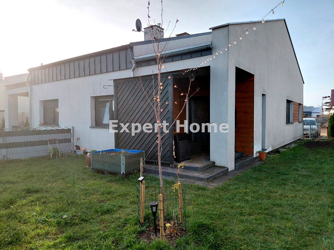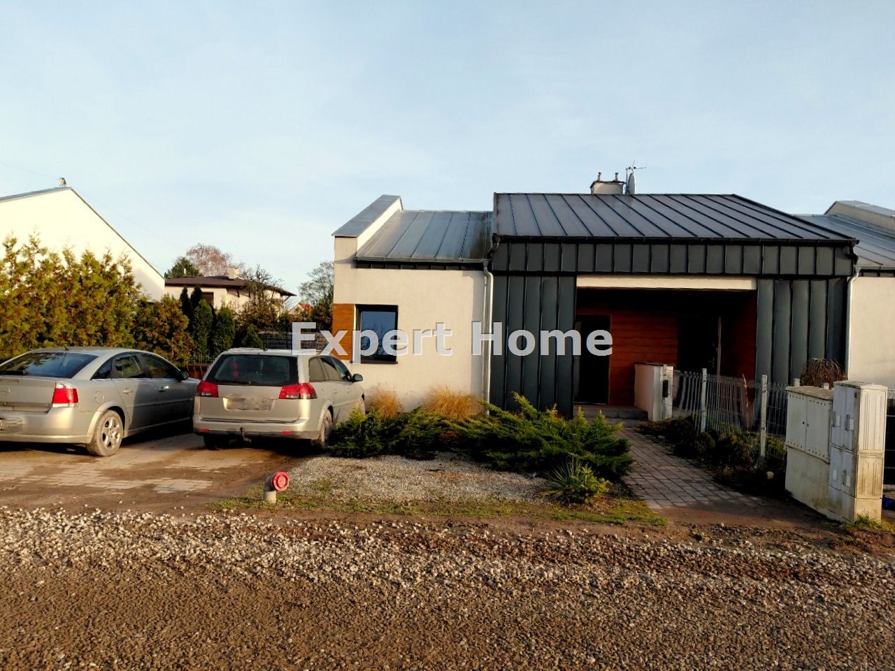 Nieruchomość ta została wybudowana w 2017, oryginalnie i ergonomicznie zaprojektowana, a także praktycznie i funkcjonalnie urządzona. Nie wymaga większego nakładu by w niej zamieszkać. Zagospodarowanie ogrodu zapewnia poczucie prywatności i odpoczynku. Od frontu budynku, w granicach działki są zapewnione dwa miejsca postojowe. Działka jest ogrodzona ale nie posiada bramy wjazdowej (bez problemu można ją natomiast zamontować). Na terenie ogrodu znajduje się także wolnostojący, blaszany garaż.