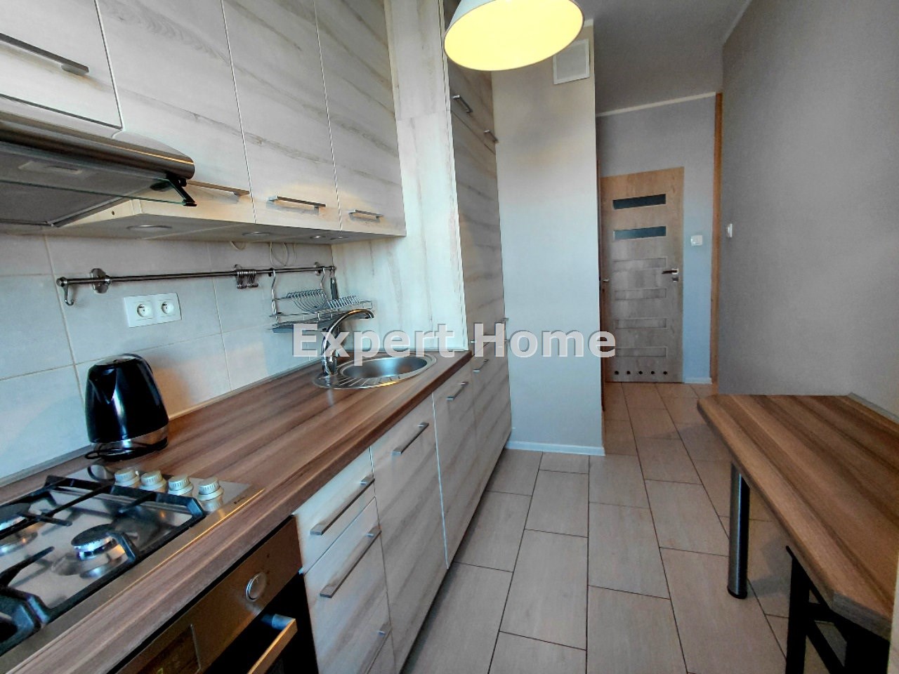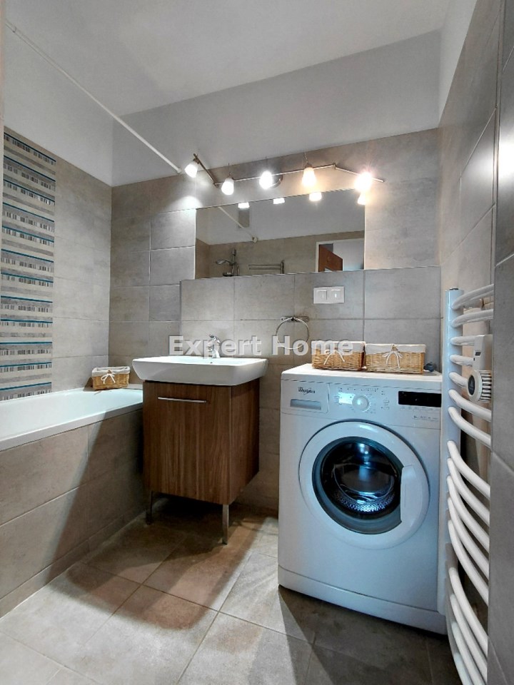 Jest w pełni niezależne, posiada jasną oddzielną kuchnię oraz bardzo duży balkon typu loggia. Dla wygody Najemców lokal jest w pełni wyposażony w wysokiej jakości meble, wszelkie potrzebne sprzęty AGD oraz RTV, a także w wyposażenie codziennego użytku (w tym między innymi: pralka, zmywarka, lodówka, zamrażalka, piekarnik, płyta gazowa, mikrofalówka, telewizor, małe AGD, naczynia kuchenne, etc.). Sypialnia obecnie nie posiada prócz szafy innego wyposażenia ale Właściciele mogą ją doposażyć.